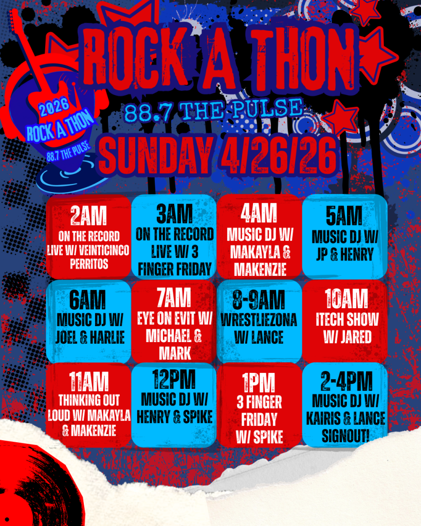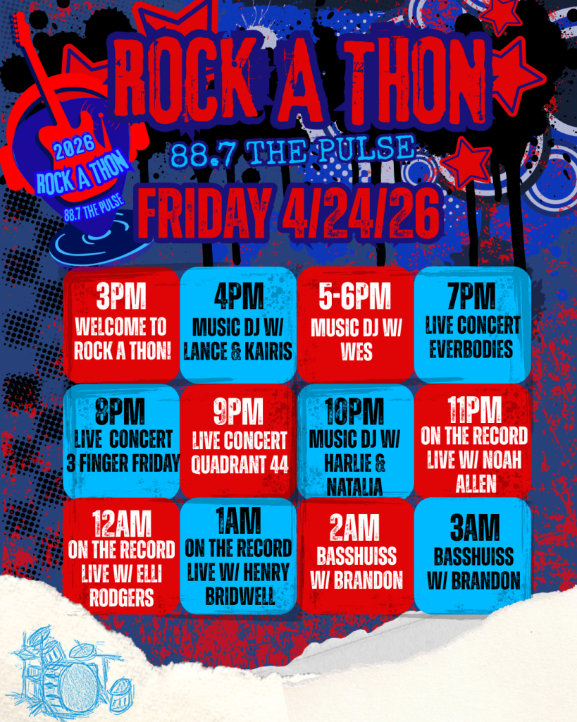 Be sure to listen in April 24th–26th on 88.7 The Pulse, online or our apps for 48 hours of live student radio—and get ready to rock!